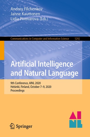 Fri frakt för medlemmar vid köp för minst 249 kr.This book constitutes the refereed proceedings of the 9th Conference on Artificial Intelligence and Natural Language, AINL 2020, held in Helsinki, Finland, in October 2020. The 11 revised full papers and 3 short papers were carefully reviewed and selected from 36 submissions. Additionally, the volume presents 1 shared task paper. The volume presents recent research in areas of of text mining, speech technologies, dialogue systems, information retrieval, machine learning, articial intelligence, and robotics.