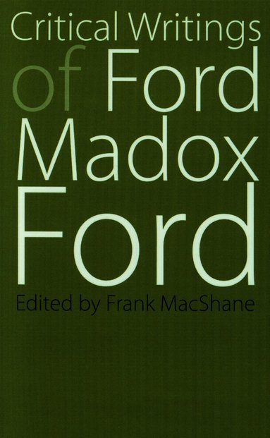 Fri frakt för medlemmar vid köp för minst 249 kr.Novelist, poet, literary critic, editor, a founding father of English Modernism, and one of the most significant novelists of the twentieth century, Ford Madox Ford (1873-1939) was the author of over eighty books, editor of The English Review and The Transatlantic Review, and collaborator with Joseph Conrad on The Inheritors, Romance, and other works. His most famous novel is The Good Soldier (1915).This collection contains essays and letters on the English novel, impressionism, vers libre, Joseph Conrad, H. G. Wells, Henry James, Herbert Read, and Ernest Hemingway.