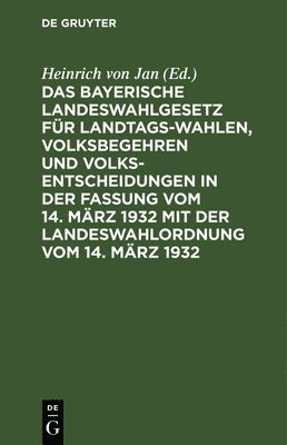 Das Bayerische Landeswahlgesetz Für Landtagswahlen, Volksbegehren Und Volksentscheidungen in Der Fassung Vom 14. März 1932 Mit Der Landeswahlordnung Vom 14. März 1932
