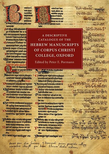 Fri frakt för medlemmar vid köp för minst 249 kr.The group of Hebrew manuscripts at Corpus Christi College Oxford forms one of the most important collections of Anglo-Jewish manuscripts in the world. Although few in number, the College's holdings are outstanding in rarity and value.Corpus Christi College was founded at a time when universities were putting considerable effort into providing better facilities for the study of Greek and Hebrew. Bishop Richard Fox, the founder of Corpus Christi, and John Claymond, the college's first President, therefore ensured that the library should be adequately stocked with the necessary printed books and manuscripts. In a famous letter to Claymond in June 1519, Erasmus predicted a great future forthe College and alluded to its well-stocked trilingual library (Hebrew, Greek, and Latin).Although few in number, the College's Hebrew manuscripts are outstanding in rarity and value. Seven Hebrew manuscripts donated byClaymond were probably produced in Oxford and Cambridgeshire in the thirteenth century. They include texts from the Hebrew Bible - the Tanakh - presented in parallel Hebrew and Latin versions, often with a literal translation into Latin written directly above the Hebrew text. It is thought that the manuscripts were the product of co-operation between Jewish and Christian scholars, and were used by non-Jews to learn Hebrew and understand the primary textsof a shared scriptural tradition. In addition to the Claymond bequest, the collection contains a second, nearly complete copy of Rashi's commentaries, and an Ashkenazi prayer book both produced in northern Europe in the twelfth century. The prayer book is one of the oldest surviving prayer books produced in Europe. It later came into the possession of a Sephardic Jew who settled in England, and who used some of its blank pages to record business. He did this in Judaeo-Arabic (Arabic written in Hebrew letters). This document is the only one written in this language in England during the Middle Ages to survive. Taken together, the Corpus collection forms one of the most important collections of Anglo-Jewish manuscripts in the world. PETER E. PORMANN is Professor of Classics and Graeco-Arabic Studies and Director of the John Rylands Research Institute at the University of Manchester.