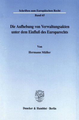 Die Aufhebung Von Verwaltungsakten Unter Dem Einfluss Des Europarechts