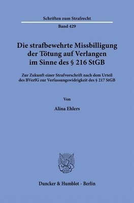 Del 429Die Strafbewehrte Missbilligung Der Totung Auf Verlangen Im Sinne Des 216 StGB: Zur Zukunft Einer Strafvorschrift Nach Dem Urteil Des Bverfg Zur VerfaAlina EhlersHäftad889 kr