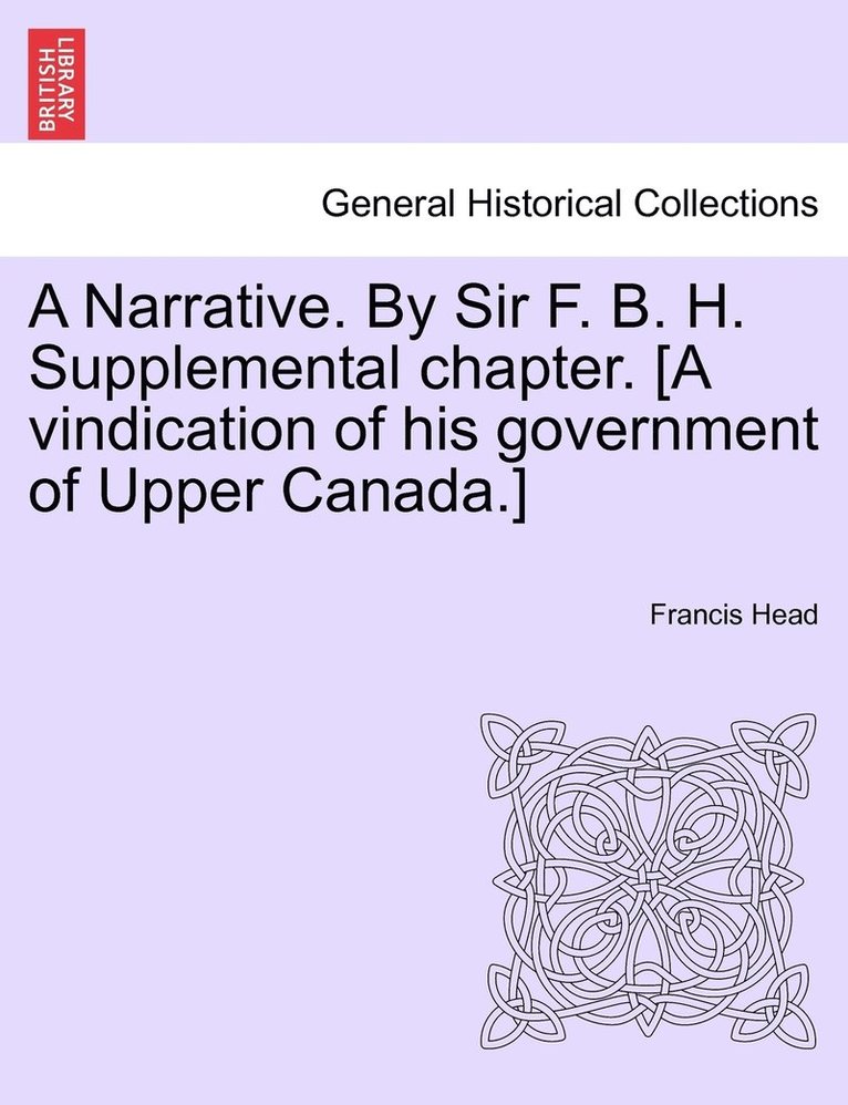 Narrative. By Sir F. B. H. Supplemental chapter. [A vindication of his government of Upper Canada.]