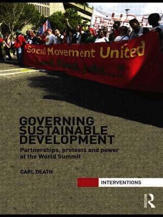 Multilateral UN summits from Stockholm to Copenhagen have set the pace and direction for the global governance of sustainable development. The 2002 Johannesburg World Summit on Sustainable Development (WSSD) was a key moment in the evolution of sustainable development as a discourse and summitry as a technology of government. It firmly established multi-stakeholder partnerships, carbon-trading and communication strategies as primary techniques for dealing with environmental crises. It was also a significant event in terms of South African domestic politics, witnessing some of the largest protests since the end of Apartheid.Carl Death draws on Foucauldian governmentality literature to argue that the Johannesburg Summit was a key site for the refashioning of sustainable development as advanced liberal government; for the emergence of an exemplary logic of rule; and for the mutually interdependent relationship between ‘mega-events’ (summits, world cups, Olympic games) and ‘mega-protests’ understood as Foucauldian counter-conducts.Analysing detailed and original research on the WSSD, Death argues that summits work to make politically sustainable a global order which is manifestly unsustainable. Paradoxically however, they also provide opportunities for the status quo to be protested and resisted. This work will be of great interest to scholars of development studies, global governance and environmental politics.