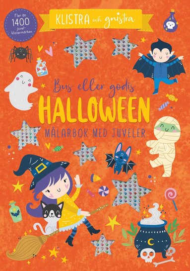 Halloween - Bus eller godis : Målarbok med juveler