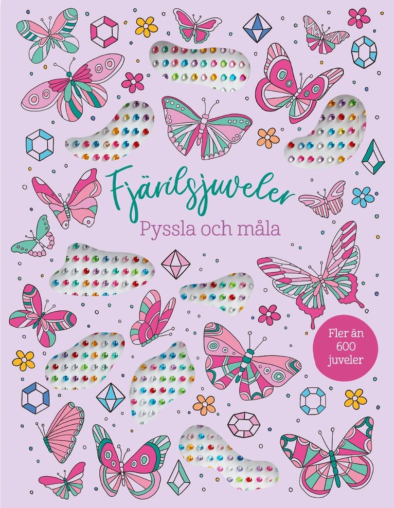 Måla dig fram genom dessa förtrollande landskap fyllda med magiska varelser och vackra ting! Plocka sedan fram arket med fler än 1000 färgglada juvelklistermärken och låt de skimrande färgerna smycka dina konstverk.