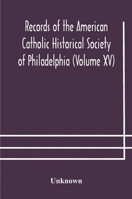 Records Of The American Catholic Historical Society Of Philadelphia (Volume Xv)