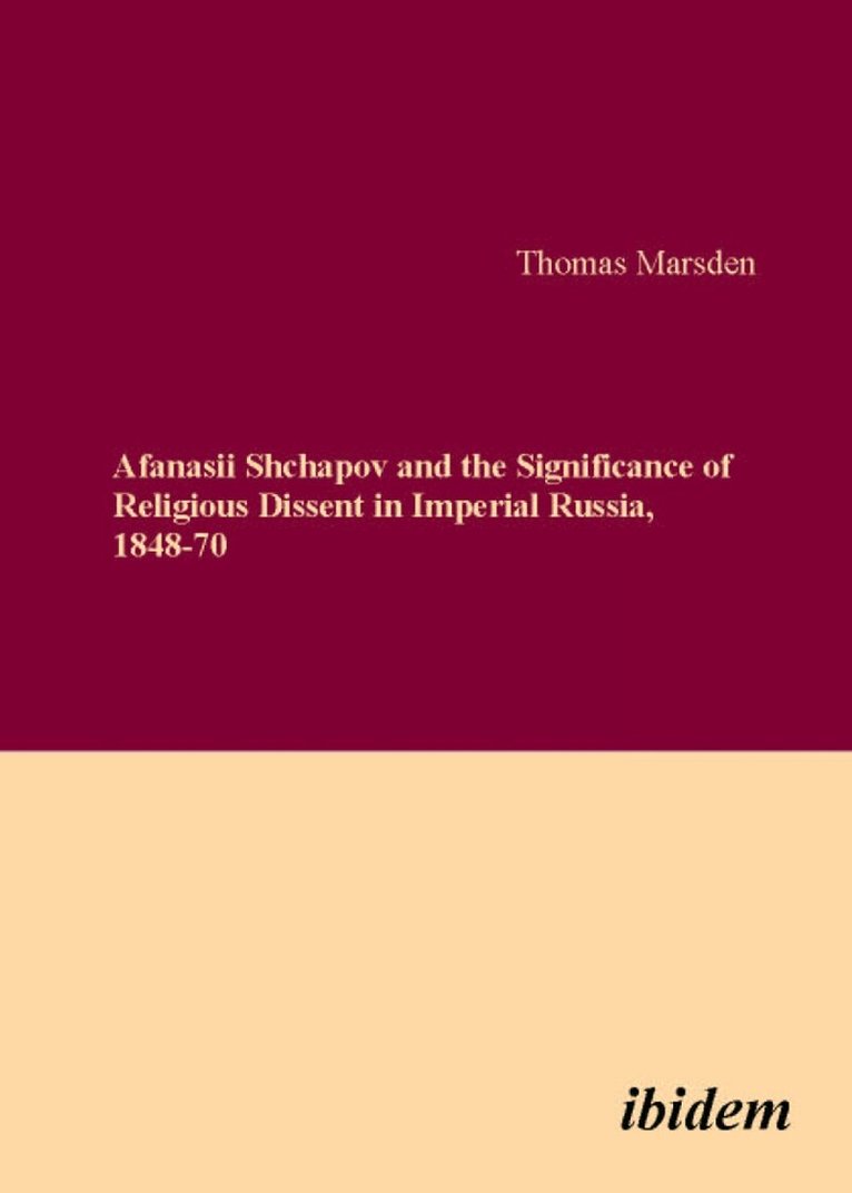 Afanasii Shchapov and the Significance of Religious Dissent in Imperial Russia, 1848-70