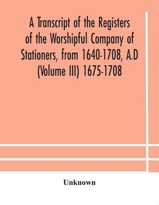 Transcript Of The Registers Of The Worshipful Company Of Stationers, From 1640-1708, A.D (Volume Iii) 1675-1708