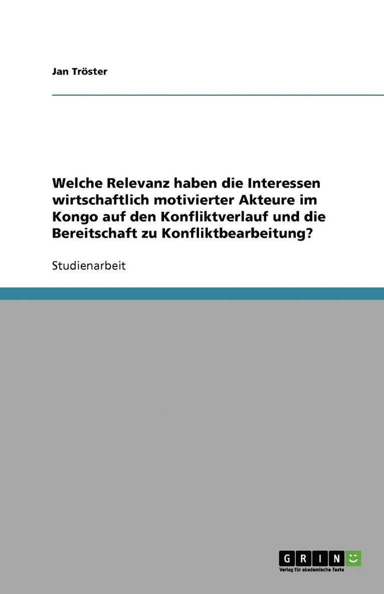 Welche Relevanz haben die Interessen wirtschaftlich motivierter Akteure im Kongo auf den Konfliktverlauf und die Bereitschaft zu Konfliktbearbeitung?