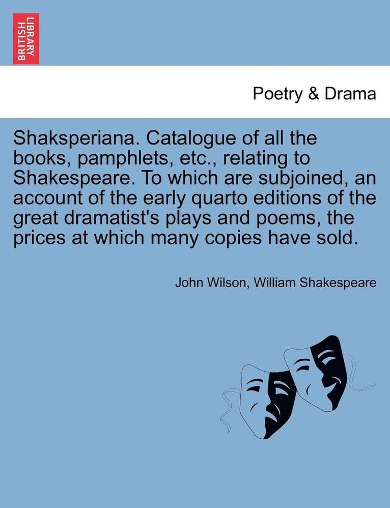 Shaksperiana. Catalogue of All the Books, Pamphlets, Etc., Relating to Shakespeare. to Which Are Subjoined, an Account of the Early Quarto Editions of