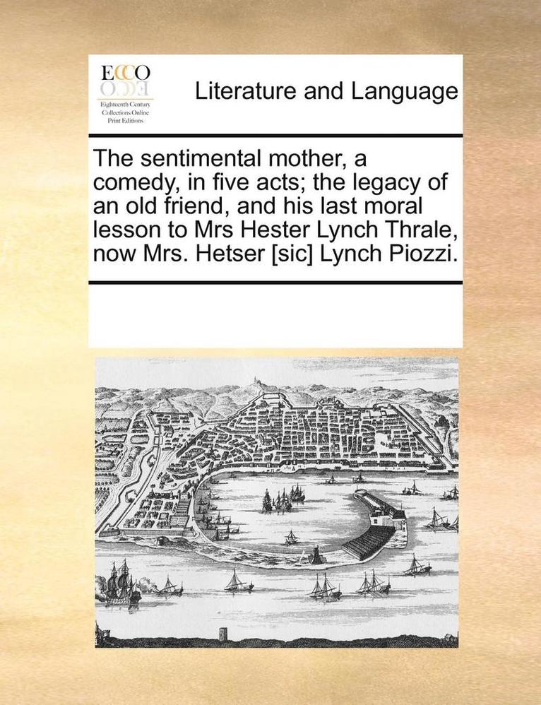 Sentimental Mother, a Comedy, in Five Acts; The Legacy of an Old Friend and His Last Moral Lesson to Mrs. Hester Lynch Thrale, Now Mrs. Hetser [Sic] Lynch Piozzi. the Second Edition.