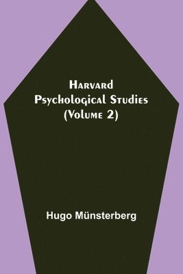 Harvard Psychological Studies (Volume 1); Containing Sixteen Experimental Investigations from the Harvard Psychological Laboratory.