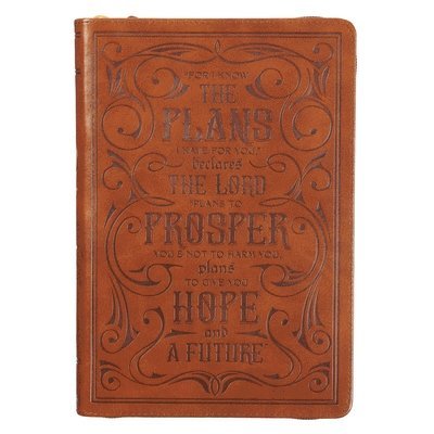 Classic Faux Leather Journal for I Know the Plans Jeremiah 29:11 Bible Verse Bible Verse Brown Inspirational Notebook, Lined Pages W/Scripture, Ribbon