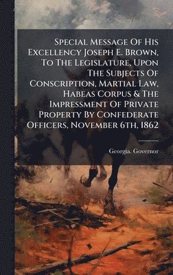 Special Message Of His Excellency Joseph E. Brown, To The Legislature, Upon The Subjects Of Conscription, Martial Law, Habeas Corpus & The Impressment Of Private Property By Confederate Officers, November 6th, 1862