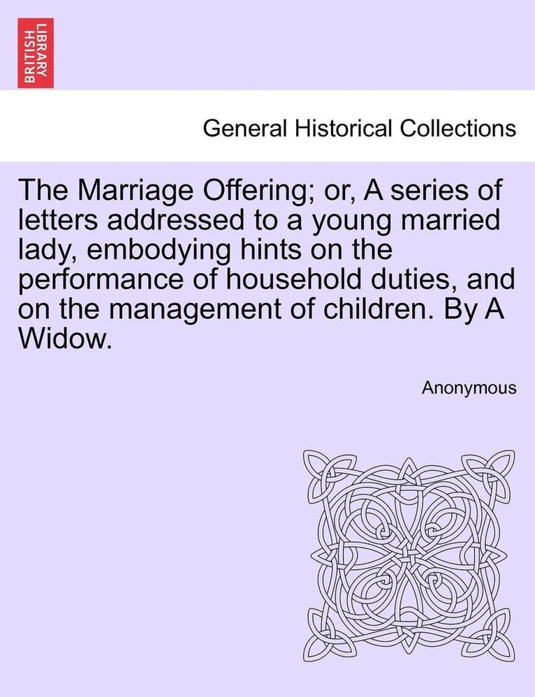 Marriage Offering; Or, a Series of Letters Addressed to a Young Married Lady, Embodying Hints on the Performance of Household Duties, and on the Management of Children. by a Widow.