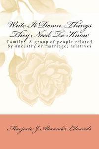 Write It Down... Things They Need To Know: Family...A group of people related by ancestry or marriage; relatives